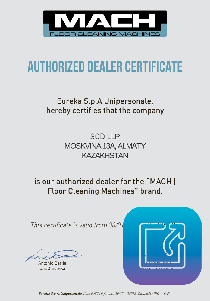 Официальные поломоечные машины MACH в Казахстане можно приобрести у нас — дистрибьютора в Алматы (адрес г. Алматы, ул. Московина, 13А). Мы предоставляем: ✅ Гарантию 2 года с бесплатным сервисным обслуживанием ✅ Бесплатную доставку по Алматы и Нур-Султану ✅ Обучение персонала работе с техникой